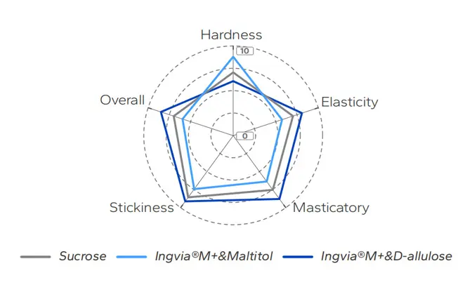 ▶ AlluPure™ adds a smooth sweetness that balances the overall flavor, contributing to a more rounded and satisfying taste experience.Adding AlluPure™ to gelatin-based gummies can enhance their gel properties, increase water content, and improve elasticity. At the same time, the product remains low in calories and experiences minimal texture changes during storage. These characteristics make AlluPure™ an ideal choice for creating healthier gummy candies.
